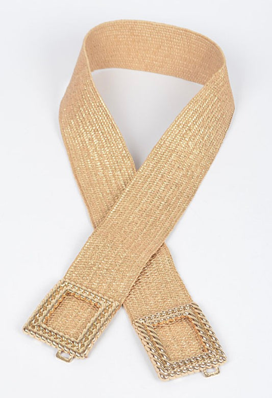 Rectangle Metal Buckle Stretch Plus Size Straw Belt